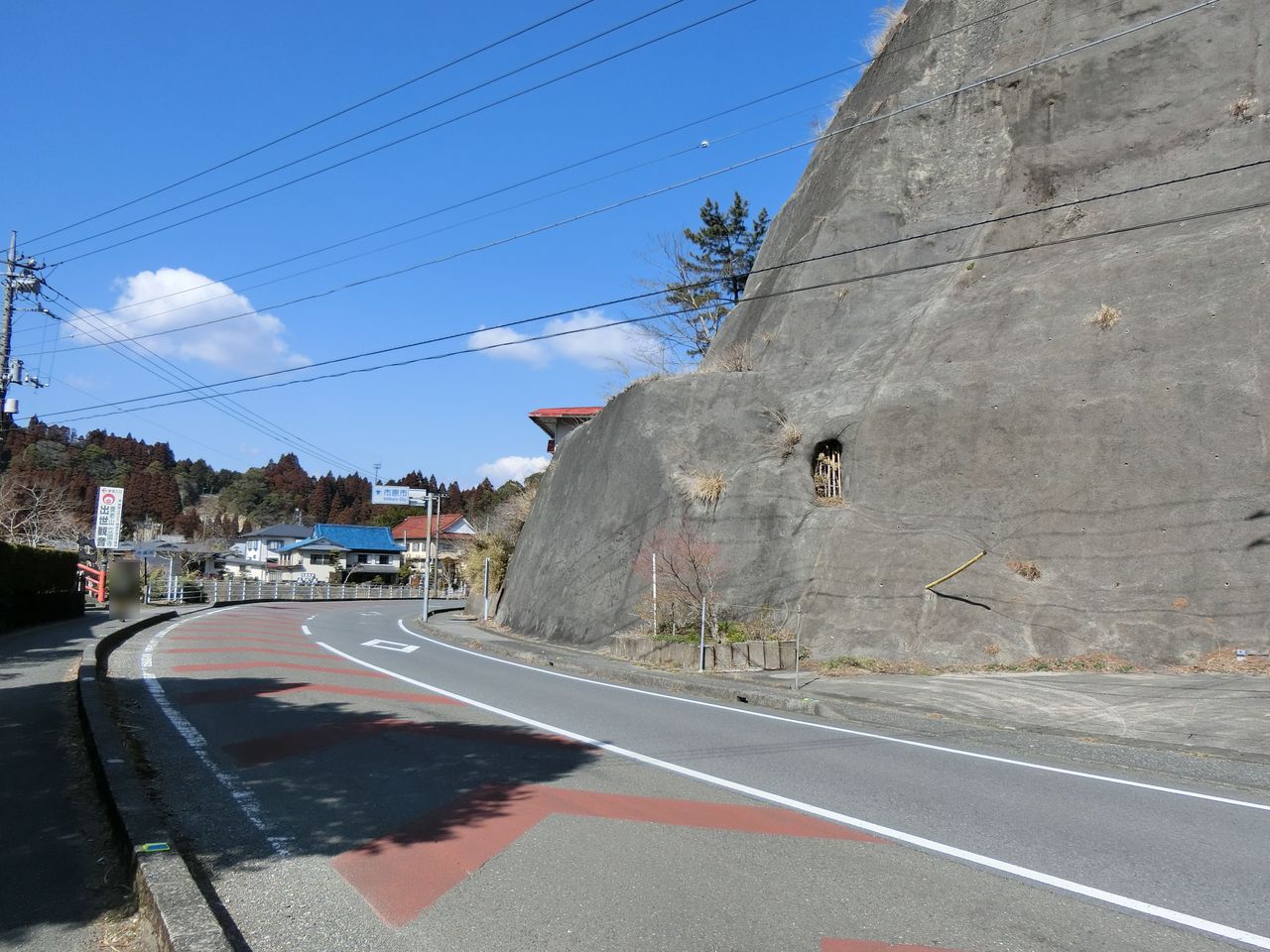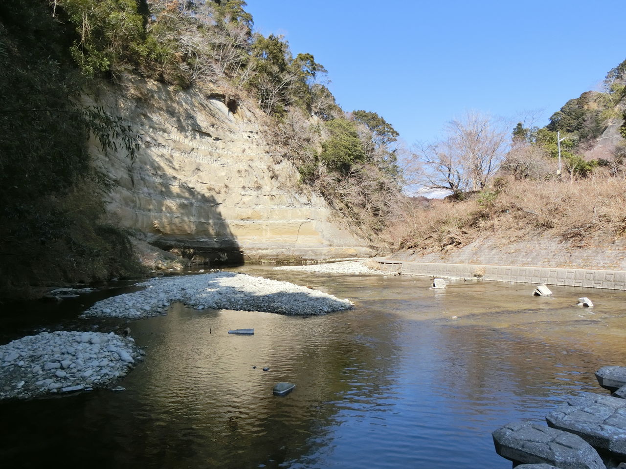 養老渓谷中瀬遊歩道から弘文洞跡を見ながら、源頼朝が再起をかけて祈願したと云われる