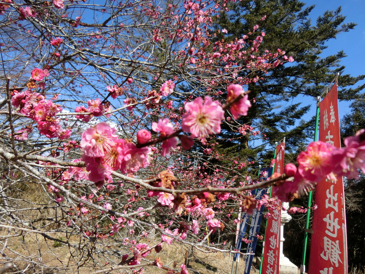 境内にピンク色の梅が咲いていて、そこだけぱっと華やかでした♪