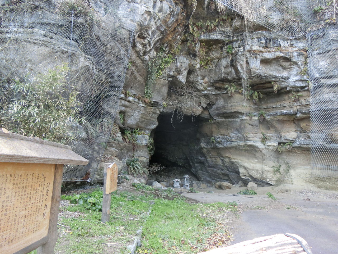 聖武天皇の御代天平13年(741年)の春、行基菩薩は諸国修行の途中にここに来られ、この洞窟に住んでいる大蛇が、庶民や運漕の人々を苦しめているのを聞かれ、大蛇を退治してその霊を鵜羽山権現として祀られました。この近くの走水神社に日本武尊とその妃弟橘媛命がお祀りしてありますが、この洞窟の中で入水して海を鎮められた弟橘媛命を11面観音として刻まれた側に安置されまして以来海上安全、人命守護の霊地として信仰されてまいりました。時代の変転により荒廃に帰しましたが、時来って今日は観光の地として復興されて再び海上安穏、人命守護、世界平和の祈りがなされています。