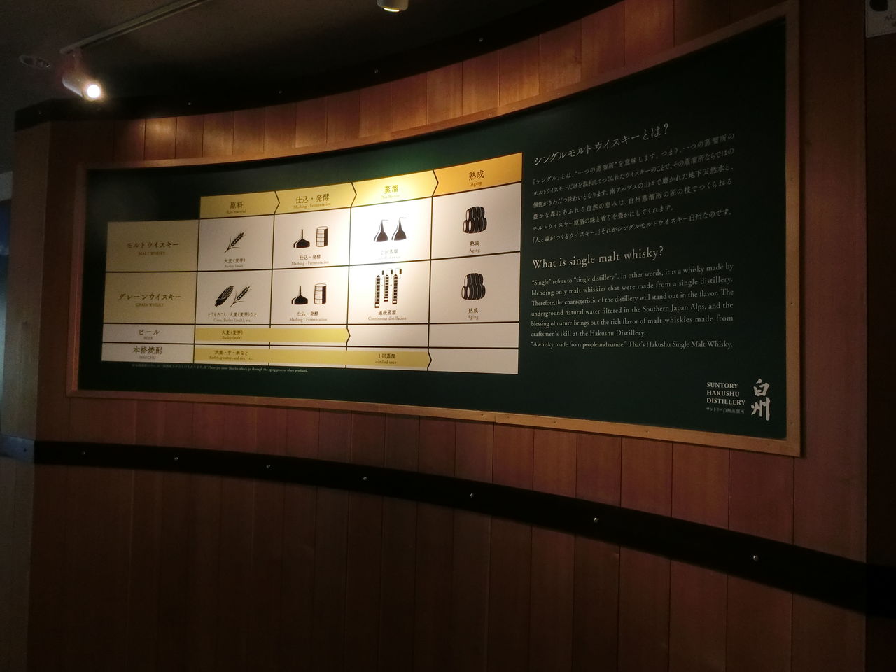 建物の中に入るとウイスキー、ビール、焼酎の製造工程の違いの表がありましたよ