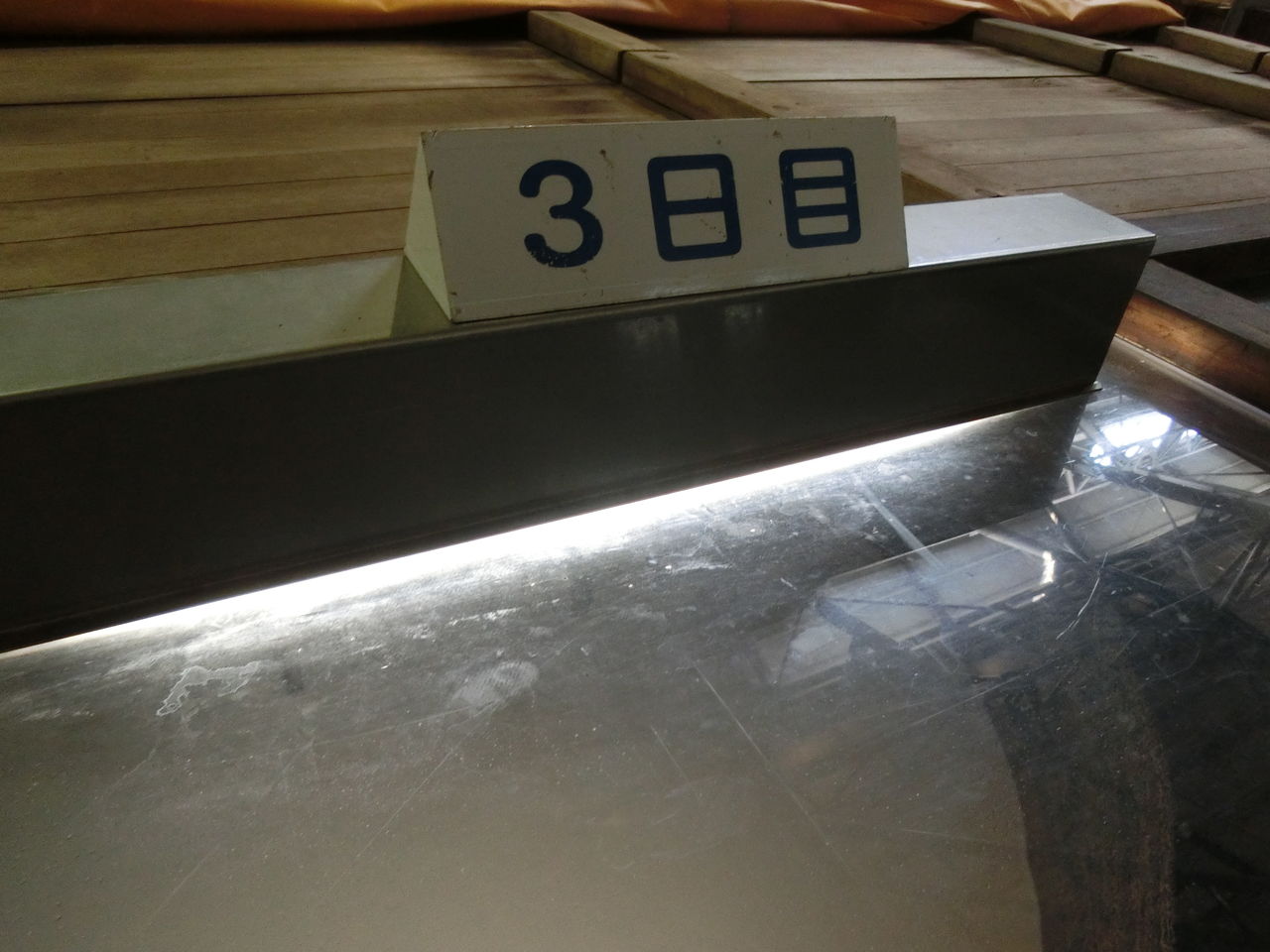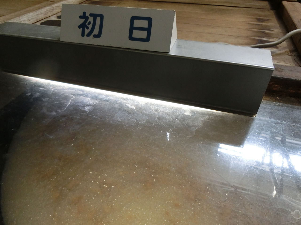初日の木桶の中を見るとぐつぐつ泡がたっていました