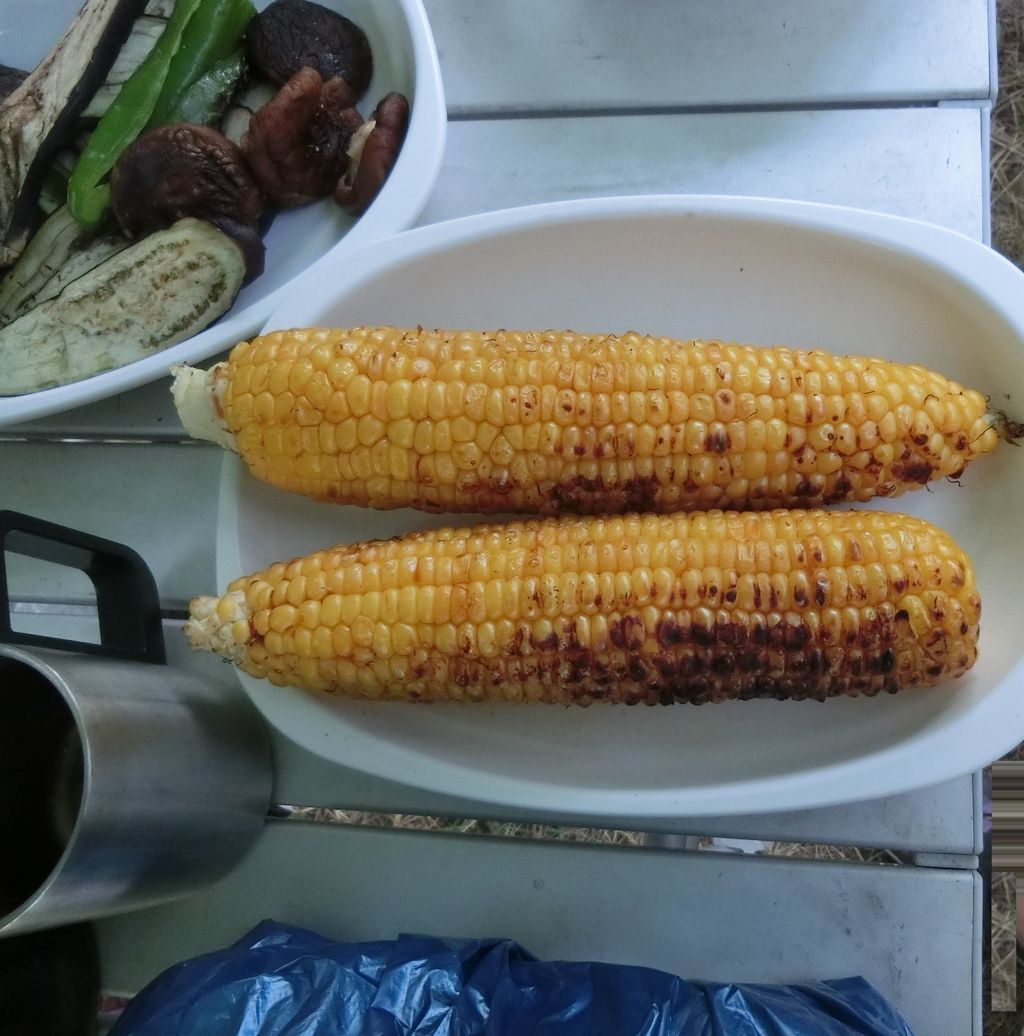 おかげで、炭で焼いた旬の焼きトウモロコシをいただけました~♪